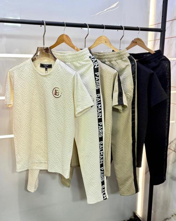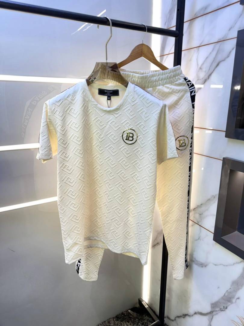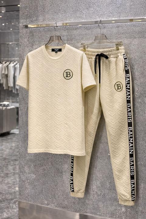 Balmai n Paris Beige Imported Embossed Print Premium Track Suit Brand Carry Bag Packing F3647-BE