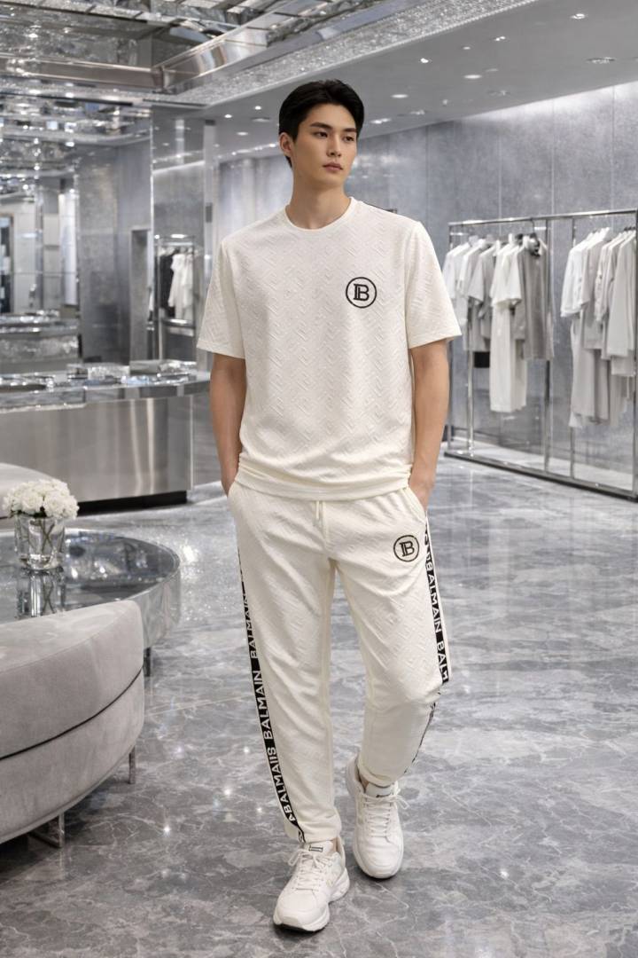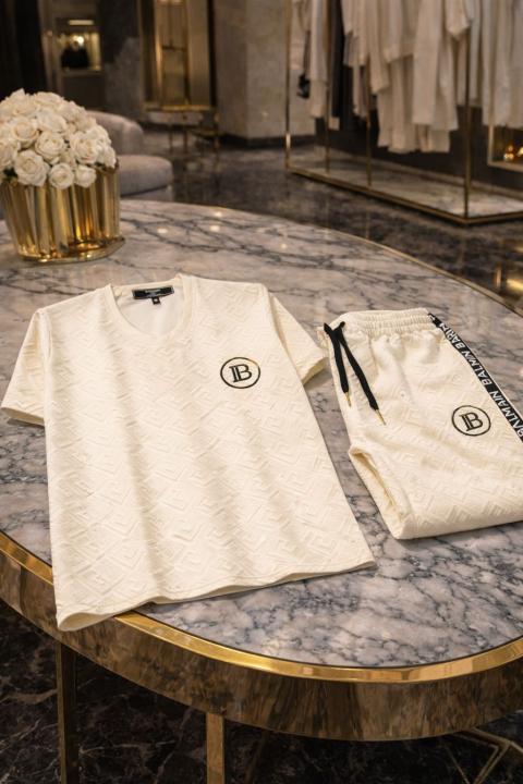 Balmai n Paris White Imported Embossed Print Premium Track Suit Brand Carry Bag Packing F3647-WH